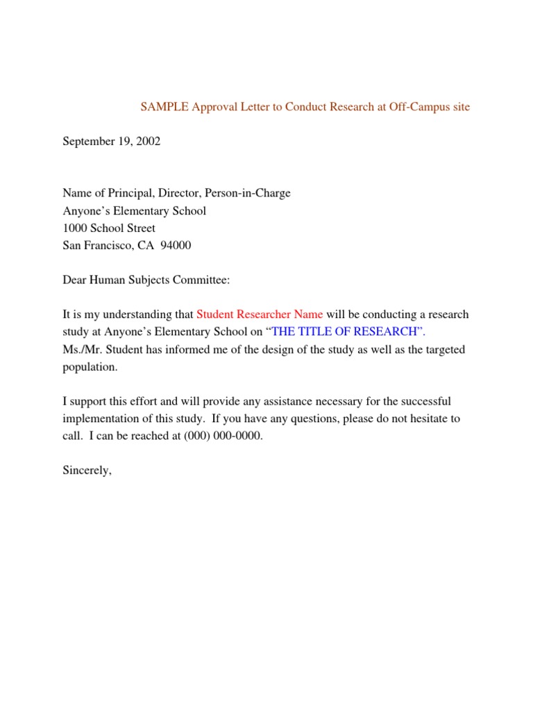 Sample Letter To Conduct Research : 13 Request Letter To A Principal Templates Pdf Free Premium Templates : Download 40 free research proposal samples & format guidelines.. Begin with a friendly opening, then quickly transition into the purpose of your letter. The sample recommendation letter shown below has been reprinted (with permission) from essayedge.com, which did not write or edit this sample recommendation letter. During wwii, in which he went beyond all expectations to conduct skype interviews with. If not, a bit of quick. The language does not have to be repeated verbatim, although all the required elements of informed consent must be included.